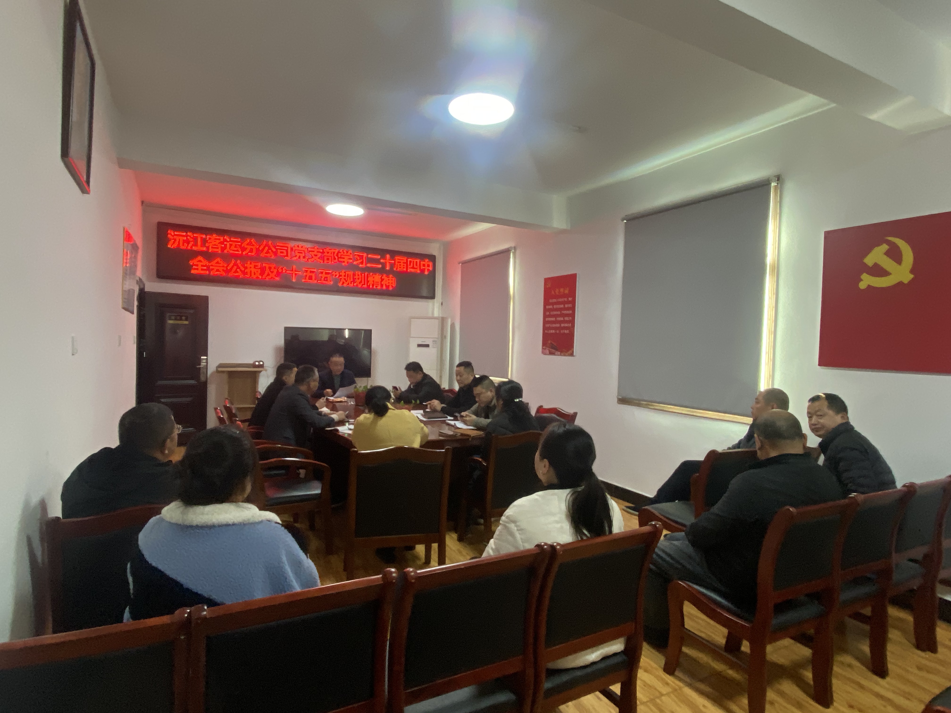 11月27日下午,中共沅江客運(yùn)分公司支部委員會書記李車組織全體黨員認(rèn)真?zhèn)鬟_(dá)學(xué)習(xí)了黨的二十屆四中全會精神及“十五五規(guī)劃”精神,并組織黨員結(jié)合崗位交流了學(xué)習(xí)心得。