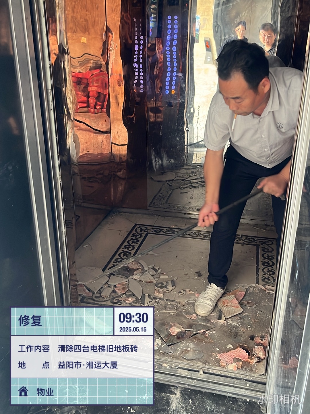 為優(yōu)化湘運大廈公共設施,提升用戶出行安全性與舒適度。5月15日,湖南遠程建設集團有限公司物業(yè)部按經(jīng)理周琦順要求,對大廈內(nèi)電梯設施啟動專項改造工程,對三臺客梯及一臺貨梯的陳舊底板進行全面更換。改造前,在副經(jīng)理潘宇文與新裝酒店施工方商討對接后,確定由公司物業(yè)工程人員完成舊底板的拆除清理,由酒店方鋪設全新耐磨地板的方案,同時創(chuàng)新采用"半覆蓋木板"防護措施,有效降低裝修材料運輸對地面的磨損。針對實施過程中樓內(nèi)裝修施工頻繁的情況,辦公室還特別強調(diào)在每部電梯新增半塊可拆卸木板,既保護新底板免受建材刮擦,又不影響日常使用便利性。(郭燦燦)